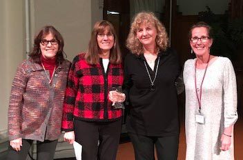 Pictured: Karen Flynn, Androscoggin Director of Hospice and Palliative Care, Nancy McCann and Leslie Konigsberg Levy of Tripp Lake Camp, and Amy Dulac, Androscoggin Bereavement Coordinator.